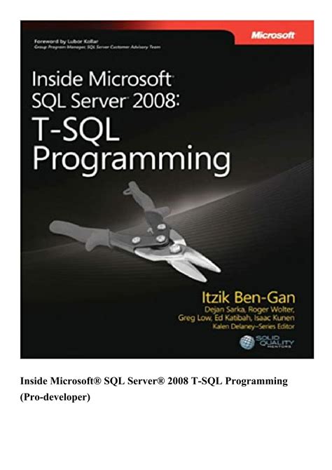 Read Inside Microsoft SQL Server 2008 T-SQL Programming Developer Reference PDF By Click Button. Inside Microsoft SQL Server 2008 T-SQL Programming Developer Reference it’s easy to recommend a new book category such as Novel, journal, comic, magazin, ect. You see it and you just know that the designer is also an author and understands the challenges involved with having a good book. You can easy klick for detailing book and you can read it online, even you can download it